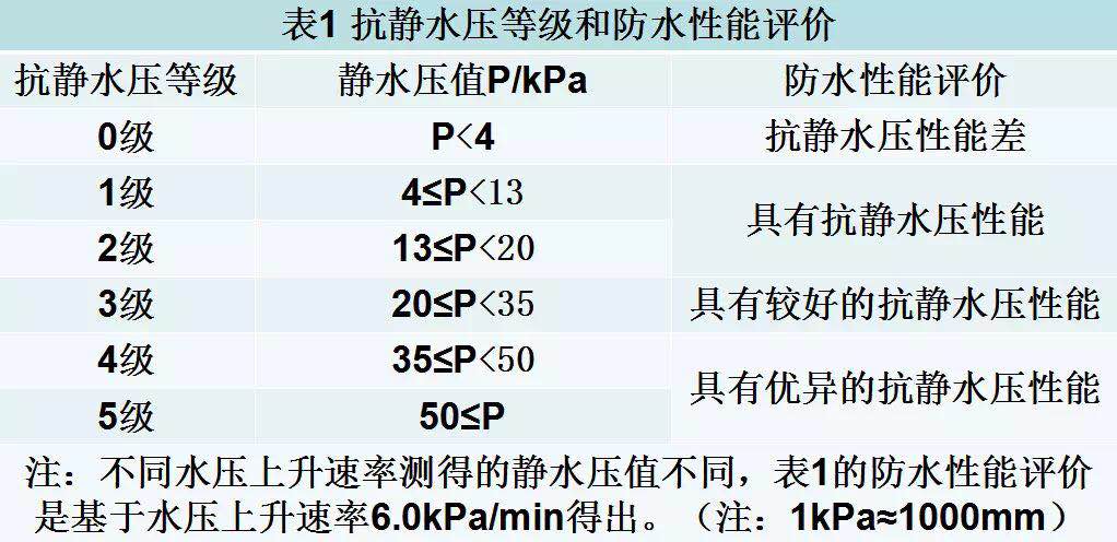 數(shù)據(jù)來(lái)自:GB/T4744-2013《紡織品 防水性能的檢測(cè)和評(píng)價(jià) 靜水壓法》