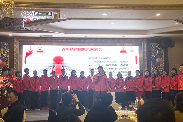 年會(huì)正式開始,睿牛總經(jīng)理華姐上臺(tái)發(fā)表激情演講,總結(jié)2018年工作得失,市場(chǎng)發(fā)展前景,鄭地有聲地向大家描繪了睿牛制衣2019的新思路,新行動(dòng),“乘夢(mèng)飛翔,再創(chuàng)2019輝煌”。