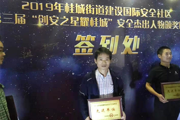 [導讀]:2019年桂城街道建設國際安全社區第三屆“創安之星耀桂城”安全杰出人物頒獎晚會,睿牛制衣廠位于佛山市南海區桂城街道,也出席了本次晚會,并榮耀獲得了2019年企業落實安全生產主體責任的《先進單位》,對于一個工廠來說火災是不可避免的,大量使用電也是會帶來火災的,所以沖鋒衣工廠時時刻刻都謹記著防火滅火的重要性!【注:小伙伴們可以看到以下圖片就是睿牛制