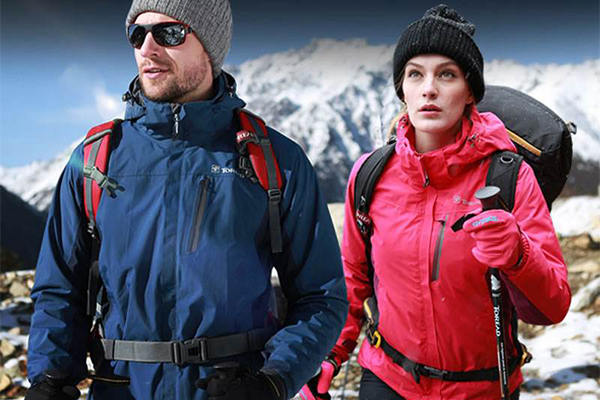 第三層就是最外面的一層,就是我們平常看到的顏色艷麗,并且有些質(zhì)地感覺有些硬硬的外殼。這一層的主要效果是防風,防水,透氣。我們一般的衣服在縫制時雖然縫合的地方線軋的很嚴密,但是還是會有風和水可以滲進來。而這種外殼的縫合處采用壓膠的形式,很好的避免了風滲進的可能。而外殼本身的面料聚有極好的防破水性,有些質(zhì)量好的沖鋒衣可以防中小雨天氣。這要根據(jù)季節(jié)和環(huán)境決定,如果你在烈日炎炎的夏季去爬山,只需要單層沖鋒衣就可以了,而在春秋季節(jié)去遠足,則需要穿著雙層沖鋒衣,而在嚴寒的冬季爬山,則必須穿著三層沖鋒衣也就是所謂三層壓膠沖鋒衣,這樣說大家可能了解什么是三層壓膠沖鋒衣了吧?其實三層壓膠沖鋒衣主要的作用是保暖,里層是內(nèi)襯,面料要求吸汗透氣,讓身體的汗水及時排除,中間一層是抓絨保暖層,具有保暖通氣的特點,能夠及時排出濕氣,對身體保溫保暖,而最外層則是具有防水防風作用的沖鋒衣外殼,在面料中加了PU涂層材料,為保證防水效果,在衣服的所有接縫處都有壓膠密封,一次達到?jīng)_鋒衣防水的效果。