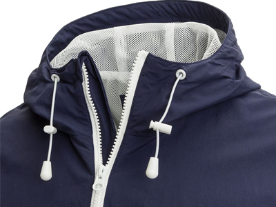 風衣內襯:風衣內里采用網(wǎng)布構造。在劇烈運動時,可加速透氣排濕,身體不悶熱,衣服不粘身。